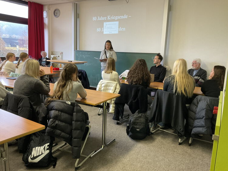 Erneut nahm das Frankenwald-Gymnasium am Projekt „Demokratie leben!“ des Landratsamtes und der Volkshochschule Kronach, das zudem eine bundesweite Aktion ist, teil. Bereits im letzten Schuljahr fand eine große Organisation im Kreiskulturraum statt. Dieses Mal lief das Projekt im kleinen Rahmen ab. Die Klasse 9c bekam für zwei Schulstunden Besuch von der Organisatorin des Projektes, Frau Mattes, sowie einem Geschichte-Lehrer und zwei Zeitzeugen. Die Schüler/innen erhielten einen Überblick über die Geschichte des Zweiten Weltkrieges sowie einen Einblick in Kriegserfahrungen und -erinnerungen. Anlässlich des Kriegsendes vor 80 Jahren ist die Auseinandersetzung mit der Vergangenheit sehr wichtig, um das Vergessen des Leides dieser Zeit zu verhindern, den Opfern zu gedenken und für die Zukunft Verbrechen vorzubeugen.