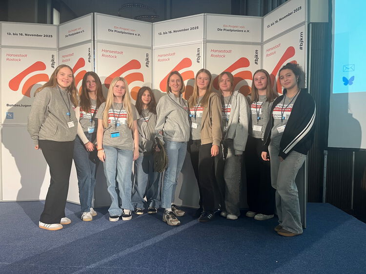 Acht Schülerinnen unserer Medienscoutsgruppe hatten in diesem Jahr die besondere Gelegenheit, an der Bundesjugendkonferenz Medien in Rostock teilzunehmen. Drei Tage lang tauschten sie sich mit Jugendlichen aus ganz Deutschland aus, besuchten spannende Fachvorträge, arbeiteten in kreativen Workshops – und sammelten wertvolle Erfahrungen für ihre Arbeit an unserer Schule. Vorträge zu Zukunftsthemen: Künstliche Intelligenz und digitale Beziehungen Besonders beeindruckend waren die Vorträge rund um das Thema Künstliche Intelligenz. Die Schülerinnen erfuhren, wie KI-Systeme heute bereits unseren Alltag prägen und welche Chancen und Herausforderungen damit verbunden sind. Ein weiterer Vortrag thematisierte „Liebe in Zeiten der K.I.“ – ein ungewöhnlicher, aber hochaktueller Blick auf Beziehungen im digitalen Zeitalter. Die Schülerinnen diskutierten über Social Bots, digitale Täuschung, emotionale Bindung an künstliche Systeme und die Frage, wo die Grenzen zwischen realer und künstlicher Nähe verlaufen.