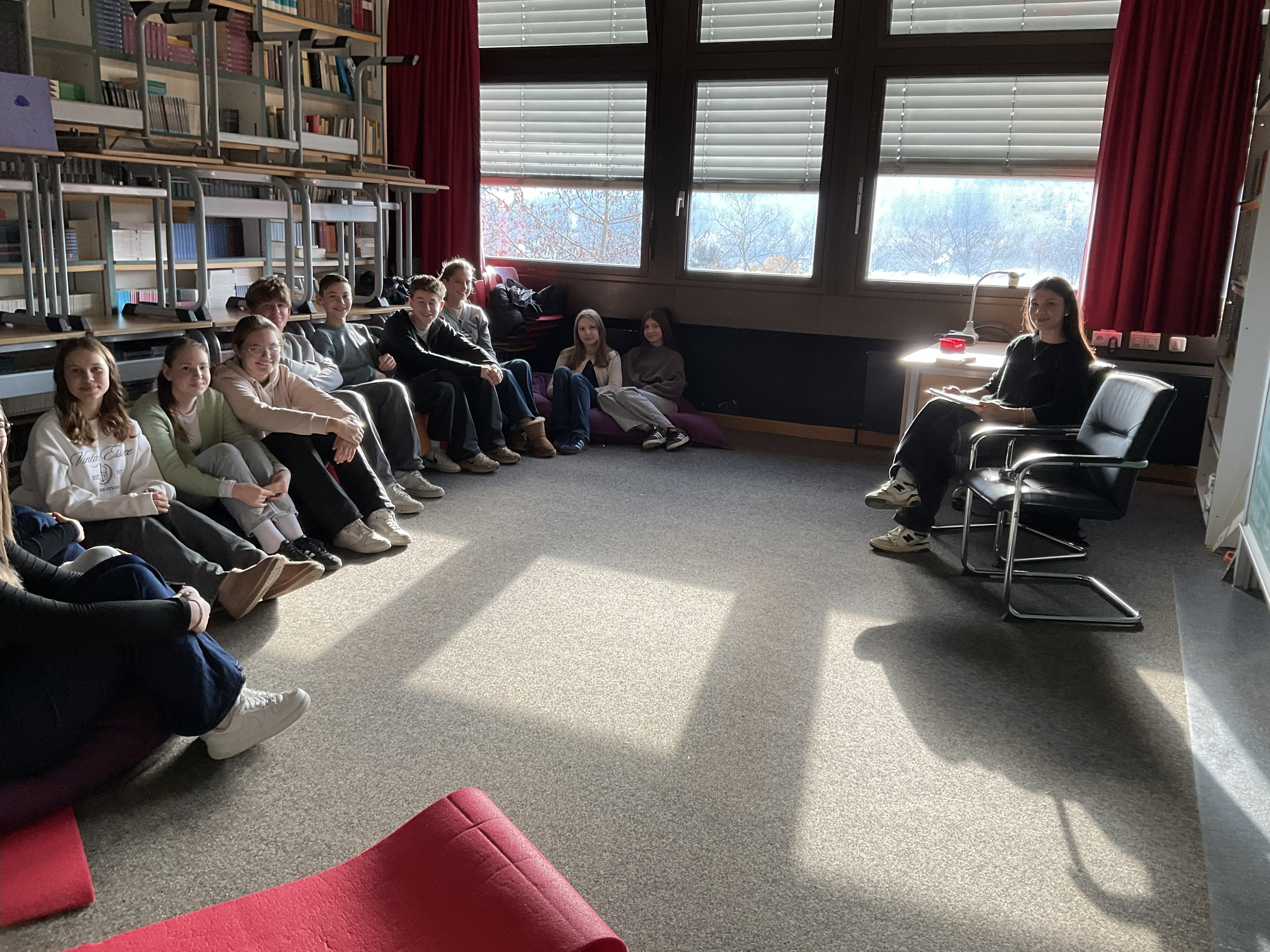 Für die achten Klassen wartete am Freitag, den 21.11.2025, eine besondere Schulstunde auf sie. Sieben Beteiligte lasen von der zweiten bis zur fünften Stunde jeweils einer achten Klasse vor. Die Achtklässlerinnen und Achtklässler durften Herrn Sattler, Frau Walter, Frau Uhthoff und Herrn Simon als Vertreter der Lehrkräfte lauschen sowie Claire Neder (11. Klasse), Magdalena Pittroff (12. Klasse) und Theodor Zimmer (13. Klasse) von Seiten der Schülerschaft.