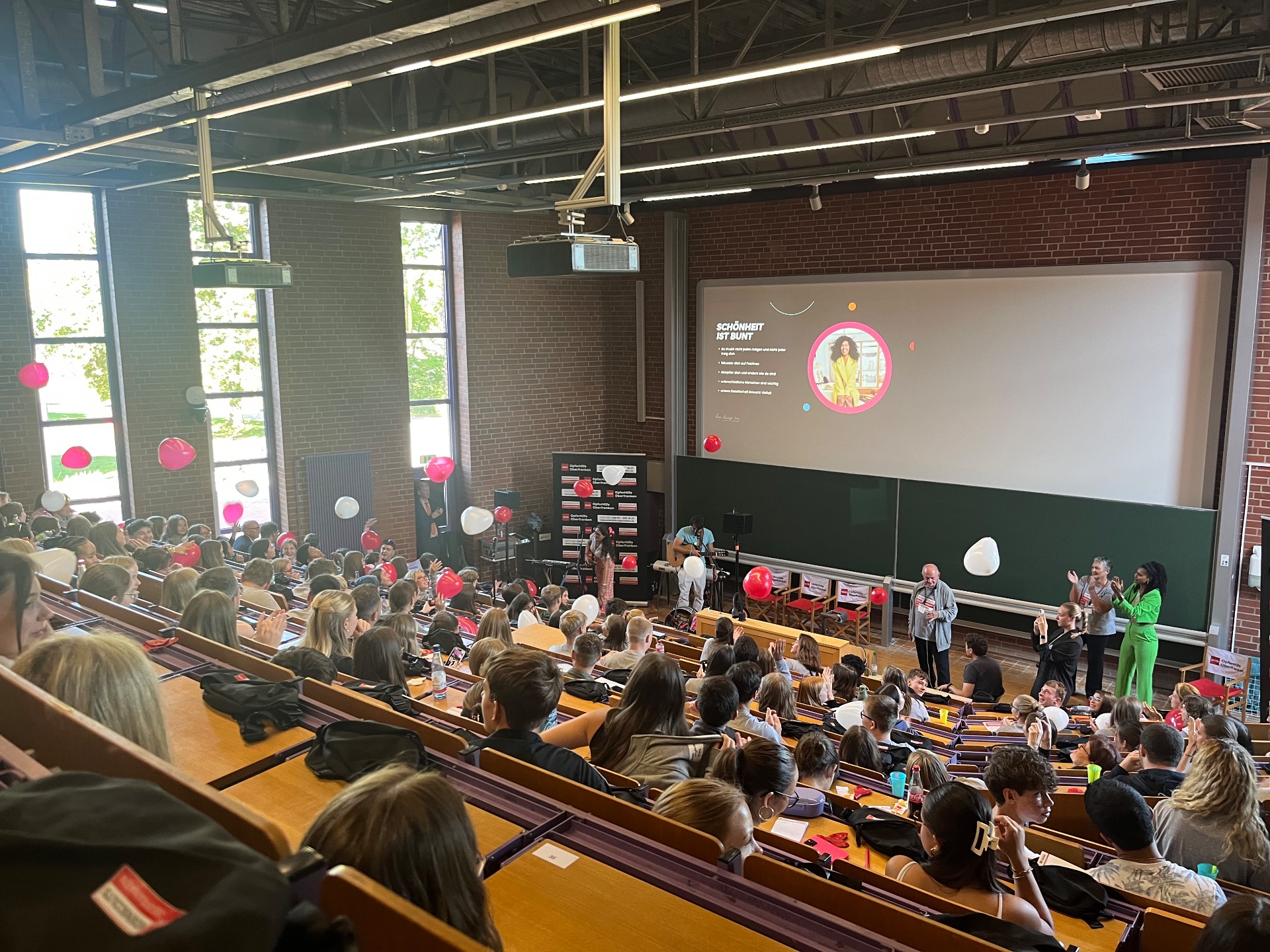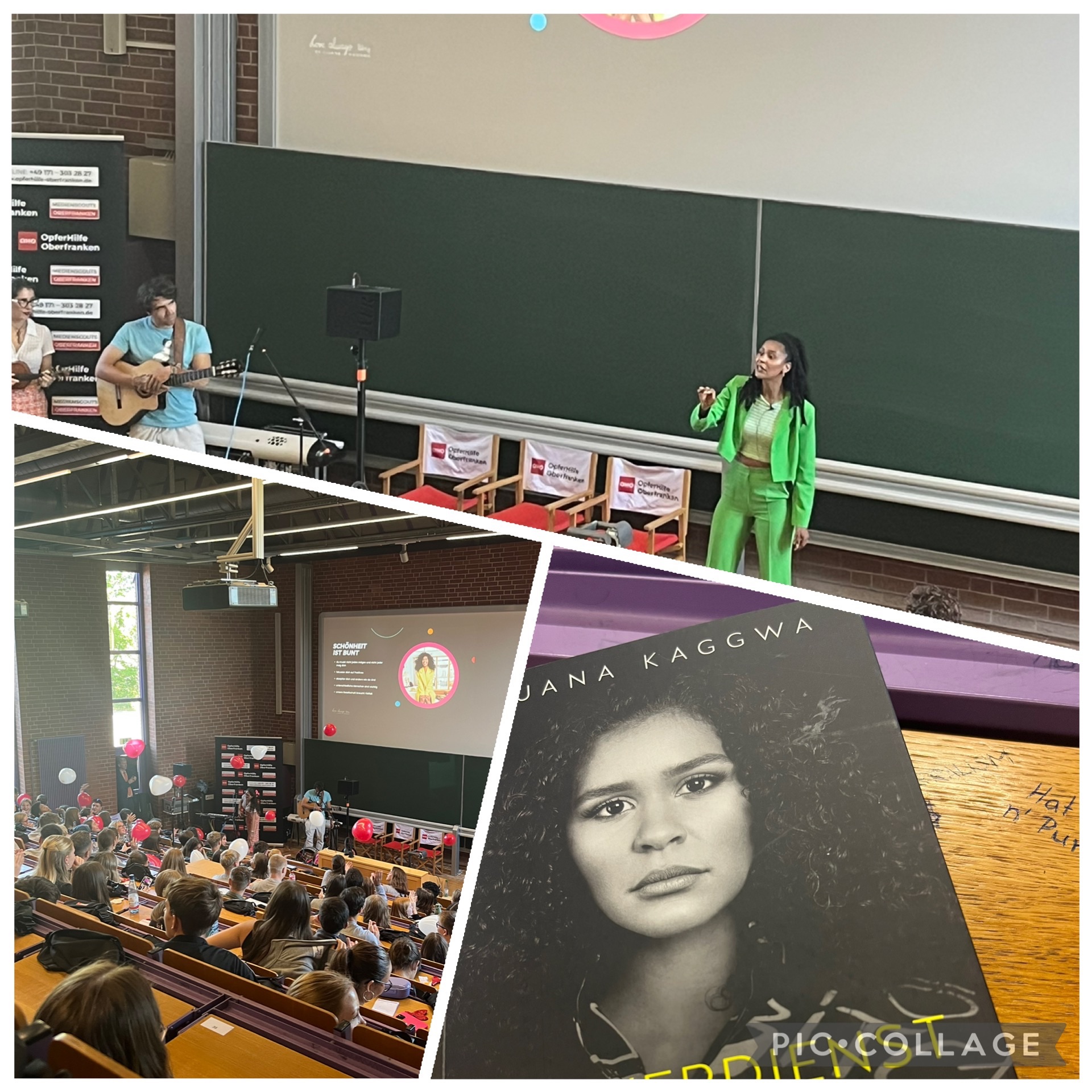 Am 18.09.2025 nahmen die 24 Medienscouts unseres Gymnasiums am Ausbildungstag der Opferhilfe Oberfranken teil. Die Veranstaltung fand an der Universität Bayreuth statt und wurde von Alfons Hrubesch und Susanne Werner organisiert und begleitet. Ein besonderer Höhepunkt war der Vortrag der Gastrednerin Lijana Kaggwa. Bekannt wurde sie 2020 durch ihre Teilnahme bei Germany’s Next Topmodel. Dort sah sie sich jedoch massiven Anfeindungen und Hasskommentaren im Internet ausgesetzt – bis hin zu Morddrohungen. Lijana brach das Finale damals aus Protest gegen die menschenverachtenden Kommentare und die mediale Inszenierung ab. Heute engagiert sie sich mit großem Nachdruck gegen Cybermobbing und Hass im Netz. In ihrem eindrucksvollen Vortrag erzählte sie offen von ihren persönlichen Erfahrungen und stellte ihr Buch „Du verdienst den Tod“ vor, in dem sie ihre Geschichte verarbeitet und Mut macht, sich gegen digitale Gewalt zur Wehr zu setzen, ganz nach dem Motto Love always wins. Für unsere Medienscouts war dieser Tag ein wertvoller Impuls, um das eigene Engagement an der Schule weiterzuführen. Neben spannenden Workshops, wie „Mach dich stark“ - gegen Hass im Netz, Fake News, Sozialer Frieden, Challenges auf Social Media oder Was ist Diskriminierung?, erhielten sie praxisnahe Tipps und Werkzeuge, um Mitschülerinnen und Mitschülern beim verantwortungsbewussten Umgang mit digitalen Medien zur Seite zu stehen. Wir bedanken uns herzlich bei der Opferhilfe Oberfranken sowie allen Referentinnen und Referenten für diese wichtige und bereichernde Veranstaltung.